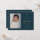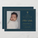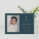 Este Convite para Batismo de Foto de Bebê com Cruz Dourada Clássico e Elegante apresenta uma simples moldura e uma cruz com brilho dourado, escrita, foto vertical e texto editável limpo e chique. Clique no botão editar para personalizar este design.