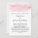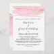 Este batismo cor-de-água rosa e dourado e o primeiro cartão de convite de aniversário é perfeito para um batismo elegante de menina. A luxuosa design feminina apresenta uma textura de cor d'água de rosa claro com um salto de poeira falsa dourada e uma elegante letra do roteiro de caligrafia. Nota: Este design não apresenta brilho de ouro real. É um gráfico de alta qualidade feito para parecer um brilho dourado.