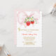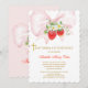 Convite de Morango para Batismo e Primeiro Aniversário, Convite de batismo e 1º aniversário de morango editável, Batismo primeiro aniversário menina, Modelo de convite de morango para batizado e 1º aniversário, floral rosa bege menina