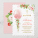 Convite de Morango para Batismo e Primeiro Aniversário, Convite editável de batismo e 1º aniversário de morango para impressão, Menina de batismo e primeiro aniversário, Modelo de convite de morango para batismo e 1º aniversário, floral rosa