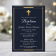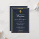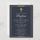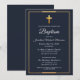 Convite Batismo Elegante Azul Elegante, Marinho de Script