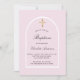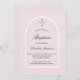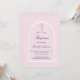 Um fundo cor-de-rosa pincelado e um quadro de arco. Personalize e um nome e detalhes da cerimônia. Escrito elegante com letra manual. Traseira: fundo cor-de-rosa pincelado.