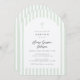 Um convite sofisticado para o batismo que apresenta um padrão de faixa de sábio e branco e uma cruz simples num papel de "cor envelhecida". Para uma linha premium texturizada, escolha o tipo de papel "Laid".