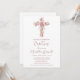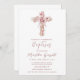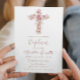 Convite Batismo Elegante Entre A Cruz E A Flor Rosa