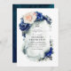 Convite Batismo Elegante Floral de marinho Azul e Pêssego