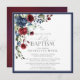 Convite Batismo Floral Azul-Marinho Borgonha Elegante