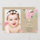Convite Batismo floral da Rapariga Rústica com uma foto ro