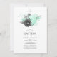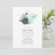 Vintage rustic watercolor convite para batismo floral com acentos de azul-aqua e negro de carvão vegetal.