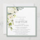 Convite Batismo Floral de Cor Verde da Sala Branca Elegant