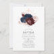 Convite Batismo Floral de marinho Azul e Maroon
