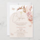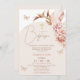 Boho Floral Moderno Blush Arch Baptism Convite Boho floral moderno e borboletas baptismo ou convite batizante com uma arca pálida e um grande arranjo floral seco com folhas de palma e flores coradas em pincel. Este convite para o batismo floral boêmio é um acordo para o batismo de uma menina.