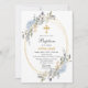 © Socialite Designs & LICENCORS. Celebre o batismo do seu filho com um convite floral elegante e dourado. Este convite personalizável apresenta belas flores, um banner dourado e uma cruz dourada. Personalize-o com seu próprio ditado atrás para torná-lo verdadeiramente único. Peça a sua hoje para uma celebração memorável e elegante de confirmação.