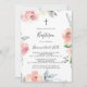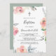 Este elegante convite para o batismo floral, cor-de-rosa, é perfeito para um simples batismo de bebê ou batizante. A design apresenta rosas rosas desenhadas à mão e peônias com folhas verdes e cinzas, inspirando beleza natural.