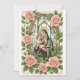 Apresentando um belo convite de Natal Baptismo desenhado por costume com rosas cor-de-rosa e a Bênção Virgem Maria segurando o bebê Jesus em um santuário arquitetado. Todos os textos e fontes podem ser modificados.