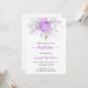 Para um batismo elegante, comemorando uma menina. Um fundo branco chic. Decorados com flores roxas e brancas, rosas e uma cruz de ouro falsa. Personalize e adicione o nome da criança e os detalhes. Letras pretas e ouros.