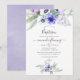 Convite de batismo floral de Anemone em tons violeta pastel com tipografia de letra manuscrita elegante.