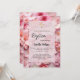 Convite Batismo flores cor-de-rosa pinceladas bebê luxo