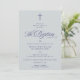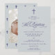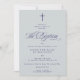 Celebrar um marco sagrado com este belamente desenhado convite batismo que incorpora tradição e elegância. Colocado sobre um fundo azul suave, um Marinho escuro azul corta o design e destaca a mensagem sentida
