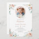 Este convite batismo apresenta uma foto da sua pequena, lindas flores e verde para a forma perfeita de convidar amigos e família para celebrar.
