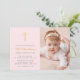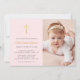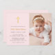 Convite Batismo fotográfico rosa cor-de-rosa simples