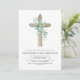 Eucalyptus e Wooden Cross Botanical Greenery Watercolor Cristã Convocações para o Batismo Religioso.