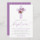 Convite de Batismo Infantil Cruz Floral Roxa