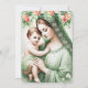 Apresentando um belo costume católico desenhado para o Batismo Irlandês e convites para o Natal com a Mãe Abençoada e Jesus Bebê em túnica verde, acentuado com florais cor-de-rosa e shamrocks verdes.