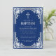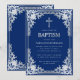 Convite Batismo Menino Elegante Azul Royal Cruz Prateada F