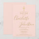 Um convite de batismo ou batizado elegante com um nome em escrita dourada sofisticada. Personalize com as informações do seu batismo ou batizado em letras douradas elegantes sobre um fundo rosa bege. Criado por Thisisnotme©