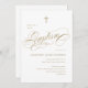 Convite Batismo Neutro Dourado por Caligrafia Elegante