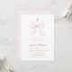 Um convite para o batismo coquete que apresenta um elegante arco rosa e uma cruz dourada.