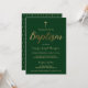 Convite Batismo Personalizado da Cruz Dourada Emerald Gree