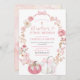 Arco branco e cor-de-rosa Coquette Pumpkin Baptism e Primeiro Convite de Aniversário, Convite de Natal Rosa, Convite Editável para Meninas Baptismo