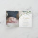 Um buquê elegante de rosas brancas com folhagem verde e uma cruz moderna. Este batismo religioso personalizado ou convite de Natal tem uma modelo que você pode facilmente mudar para suas próprias informações pessoais. Altere a imagem para a sua própria imagem. Torne a sua ocasião especial uma ocasião memorável.