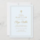 Um doce convite batismo com um belo quadro de brilho dourado e texto batismo editável clássico com detalhes cruzados.