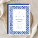 Convite Batismo religioso entre Azulejos Azuis Elegantes