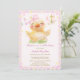 Convites de biberão para biberão | Pato de borracha, convites para o primeiro aniversário Comemore seu dia especial com nosso convite para o batismo de pata de borracha rosa - a mistura perfeita de encanto e tradição. Projetado com tons suaves e um gráfico adorável de pato de borracha, este convite dá um tom alegre para o batismo ou batizar da sua menina. Totalmente personalizável, você pode facilmente editar o texto para incluir nomes, datas, detalhes da igreja e informações de RSVP. Ideal para imprimir ou enviar digitalmente, esta modelo é uma forma sem complicações de convidar pessoas amadas. Quer você esteja planejando um pequeno encontro ou um grande evento, este convite exclusivo adiciona um toque pessoal e brincalhão à sua celebração. Torne o batismo da sua filha inesquecível com esta design doce e temerária.