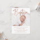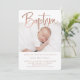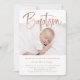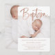 Este convite simples e na moda Baptism apresenta duas fotos do seu bebê, com elegante e moderna tipografia de rosa dourado faux.