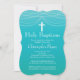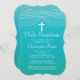 Bonito e elegante convite para o Batismo Sagrado ou convite para o Na moda Christening apresentando um rico delicado de terra firme com uma cruz branca pendurada em um chic e popular fundo azul-azul-turquesa. Sacudir o convite para encontrar um ombre correspondente de volta. Disponível em nosso compro em várias cores para uma menina ou um menino.