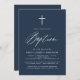 Convite Batismo Simples Azul Marinho de Script Minimalista
