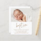 Este convite para o batismo do bebê fotógrafo moderno apresenta uma escrita caligráfica com letra mão, uma arte de batismo que é móvel e que você pode facilmente mudar a cor, uma foto horizontal e um texto editável. Clique no botão editar para personalizar este design.