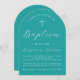 Convite Batismo Teal Arch Cross e Script Boy Christening