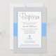 Convite Batismo transversal azul cinzento do baptismo do