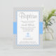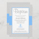 Um convite azul e cinzento à moda do batismo ou do baptismo. Caracterizando uma viga cinzenta e branca modele e cruz azul. Na moda e moderno -- personalize facilmente para seu evento!