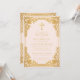 Este elegante convite de batismo rosa e dourado com ar vintage, recomendado para uma menina, tem uma moldura ornamentada em folha de ouro falso com decorações barrocas elegantes sobre um fundo rosa claro. Acima do texto há uma cruz religiosa em ouro falso. Exceto a ocasião "Batizado", que também está em ouro falso, todo o texto pode ser personalizado e tem uma cor dourada semelhante à moldura dourada.