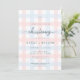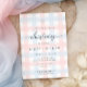 Celebre o batismo dos seus gêmeos com este convite de batismo clássico em gingham. O design apresenta um padrão gingham atemporal combinado com uma tipografia elegante e manuscrita, criando um visual tradicional e charmoso para esta ocasião especial.