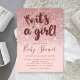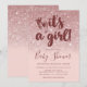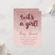 Convite de Batom Rosa Brilho Dourado Rosa Ombre É Uma Menina Bebê. Convite de chá de bebê de menina moderno e trendy com brilho dourado rosa falso e fundo rosa para escolher sua própria cor com pegadas de pés de bebê fofinhos. Personalize facilmente este modelo com seu próprio texto personalizado e detalhes do chá.