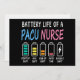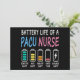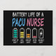 Humorous shift display showing the battery levels of a PACU nurse, also known as a post anesthesia care unit nurse, with colorful levels from start to double shift. Ideal for recovery room staff who enjoy relatable workplace humor.