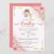 Celebre o batismo católico de sua filhinha com este convite com um anjo fofo e flores cor-de-rosa. Personalize este design. Disponível em espanhol. Celebra el bautizo de tu niña con invitación de angelita y flores. Personaliza este diseño.