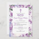 Celebre o batismo religioso do seu filho com este elegante convite das Flores Roxas, com flores roxas bonitinhas e uma cruz. Ideal para um partido cristão católico. Disponível em espanhol. Celebra el Bautismo religioso de tu hijo con esta elegante Invitación con Flores Moradas, que apresenta as lindas moradas y una cruz. Ideal para una fiesta de Bautismo Católico.